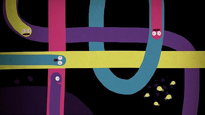 Wriggly, wiggly, with no feet, teeth or claws, we the friendly, cooperative worms, tunnel and dig for all, without pause.