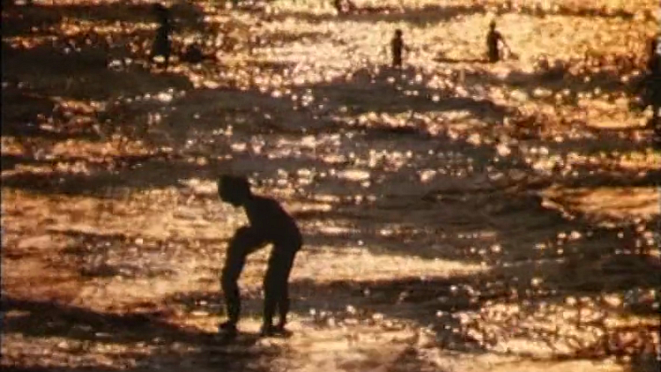 Pour la première fois le réalisateur pose sa caméra, son « subjectif », en extérieur. Il ne s'agit plus de percer l'obscurité pour y faire naître, mettre en scène des figures anthropomorphiques aux rituels plus ou moins mystérieux, mais de partir de la lumière du monde, en l'occurrence celle d'une plage au bas d'une falaise, et d'y capter les évolutions de vacanciers anonymes.